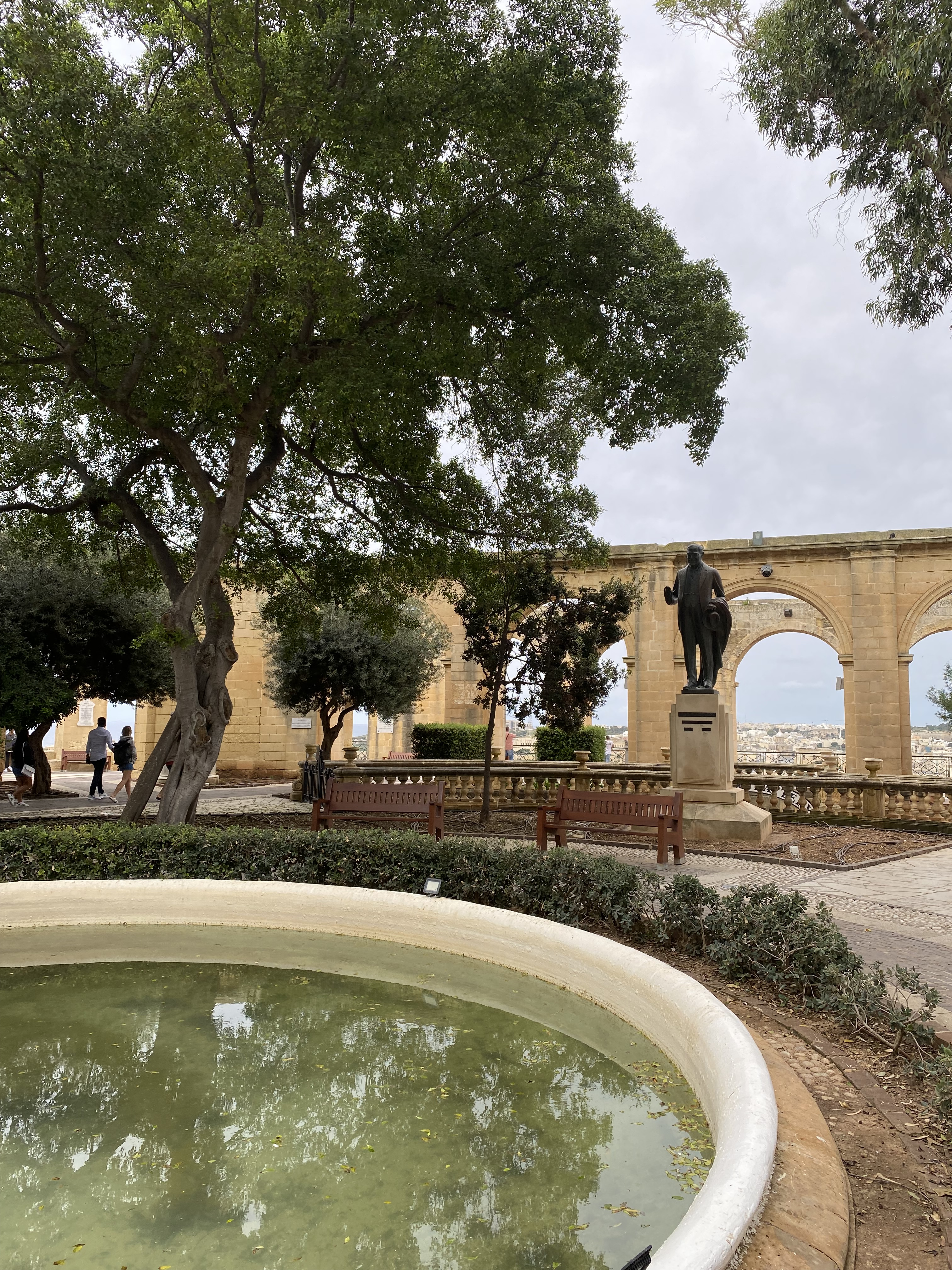 Het was heerlijk zonnig weer zo’n 22 graden. Na het ontbijt ging ik met de bus naar Valletta. Het openbaar vervoer is prima geregeld op Malta. Ik betaal €1,50 voor een enkeltje. Vlak voor de stad Valletta kwamen we vast te staan in het verkeer en raadde de buschauffeur aan om het laatste stukje te gaan lopen. Het blijkt dat er een militaire parade aan de gang is vanwege Remembrance Day. Ik kon hier nog net het laatste gedeelte van zien. Dit is wel een ervaring om mee te maken en een extra cadeautje. Ik wil de St. John’s Co-Cathedral bezoeken maar vanwege een dienst is dit niet mogelijk. Ik kom er snel achter dat op zondag veel gesloten is. Dat is geen probleem want het slenteren door de straatjes is al geweldig. Al die gevels met gekleurde overdekte balkonnetjes, de smalle steegjes en doorkijkjes maken veel goed. Ik ga naar de Upper Barracca Gardens om daar van het uitzicht te genieten. Er is op dat moment ook nog een klarinettist aan het spelen en een danspaar is er de tango aan het dansen. Heerlijk op een terras in de zon, genieten van dit alles!